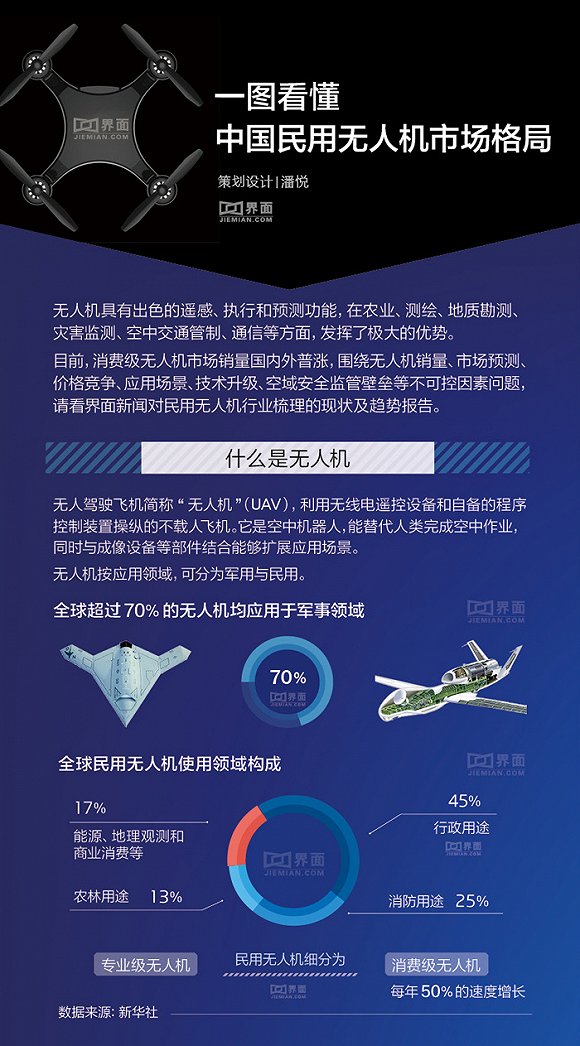 成为全球民用无人机生产科研基地。另外预计2025年中国民用无人机市场规模将超过700亿元。请看新闻对民用无人机行业梳理的现状及趋势报告。