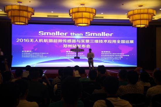 6月24日上午,“Smaller than Smaller 2016无人机航摄超微传感器与实景三维技术应用全国巡展·郑州站发布会”在郑州成功召开。本次大会由北京国遥新天地信息技术有限公司联合北京观著信息技术有限公司和北京捷翔天地信息技术有限公司共同主办。来自相关科研院所、高校、应用单位,以及相关企业的200余位代表参会。河南省地理信息产业协会会长邓跃明、秘书长张进军、河南省测绘学会等相关领导同志参加发布会并致欢迎辞。