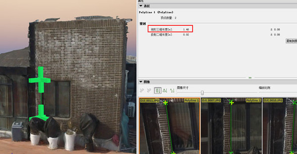本次建筑物3D建模,针对屋顶阁楼部分,采用无人机飞行拍摄带GPS数据的高清图像,利用后处理软件进行实景照片建模,得到建筑物楼顶的3D模型,最后利用后处理软件中的测量工具,对数据和实景中的物体距离进行测量比对。