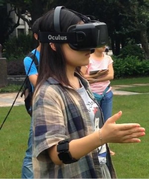 “这套飞行装置使得我们只需要带上眼镜想一想或者手一挥,就能像鸟儿一样,用全新的角度去探索一些平常难以看到的地方,同时也可以给不方便活动的残障人士提供一种全新的方式来认识世界。”崔雪扬在项目报告书里描述的这套飞行装置,包括一个MindWaveMobile脑电耳机、一个Myo臂环、一副虚拟现实(VR)眼镜、一架六轴飞行器以及搭载的云台和同步摄像头。