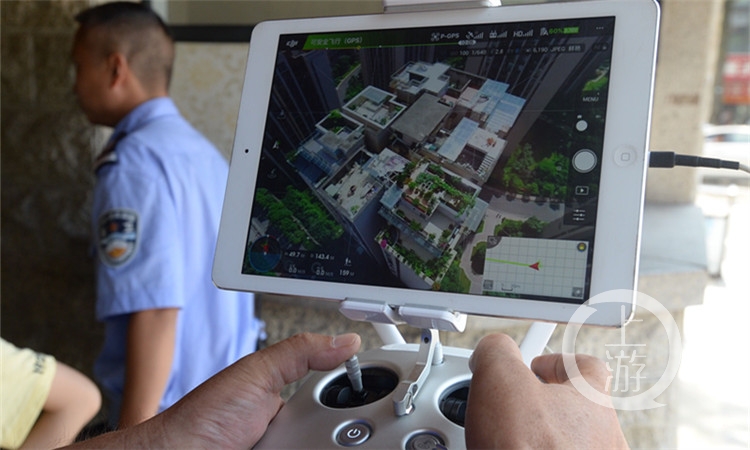 担任此次无人机巡查工作的,是来自重庆市勘测院的工作人员们,随着无人机的升空,他们手中遥控器上的平板电脑上,被巡查小区的情况一览无余。指着屏幕上突兀出现的蓝色雨棚,工作人员说,这些搭建在露台之上的建筑物,就属于违法建筑的范围之内。