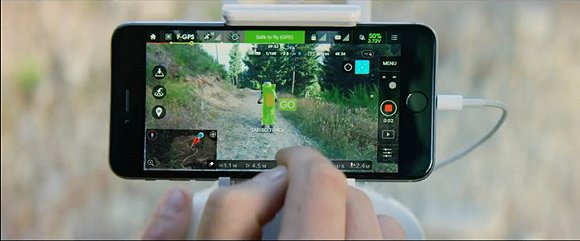 用户在iOS和安卓系统的DJI GO应用程序中选择“智能跟随”模式并点击被跟随目标,精灵4便会在视野中自动扫描该对象,并在当前高度上开始跟随。