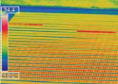 图二是一张典型的PV园区的红外图像。图像显示了园区温度的变化程度。这张图像显示了两个明显温度升高的区域。可以推测这两个区域的面板没有和逆变器联系起来,所以太阳的能源都变成热能导致温度升高。当然,对图像进一步细致的分析还可以揭示更多的问题。