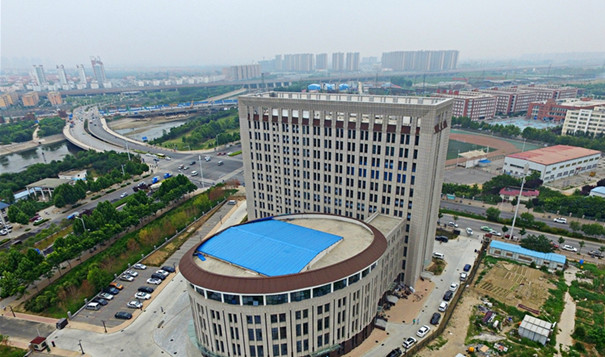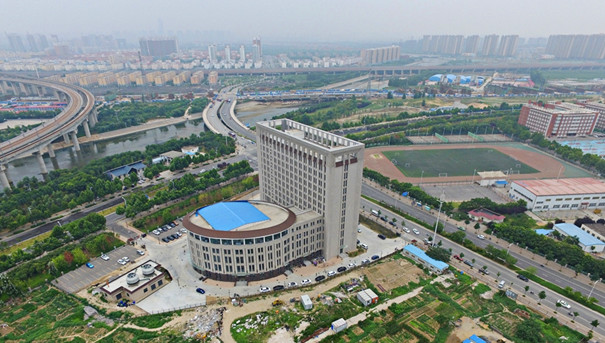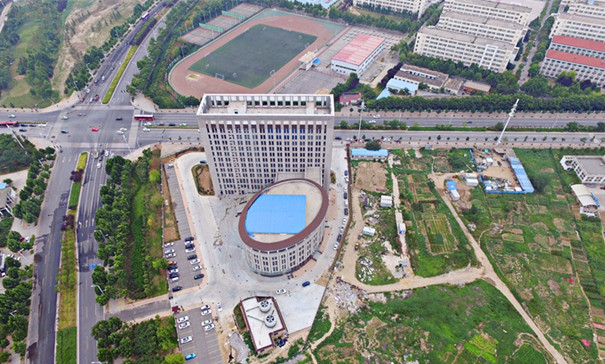 华北水利水电大学龙子湖校区的校园内,新落成的一座大楼造型奇特,远远看去犹如一座巨型的马桶。