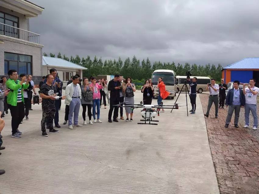 上午8:30分来到东兴村农机合作社,下车后,大家就被广场中央停落的“飞行器”吸引过去了,不!是一个放大版的“飞行器”!难道它就是传说中的农业专用“无人机”?小伙伴们兴致冲冲地围观过去,举着手机、相机一番“咔嚓嚓”。