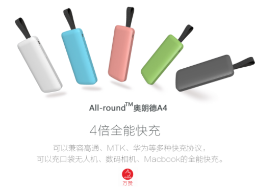 不仅仅如此,万赞全能快充A4还能给支持9V以下充电电压的口袋无人机充电,也能给一般的单反数码相机和Macbook进行充电,功能真实相当强大,值得期待。