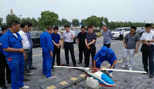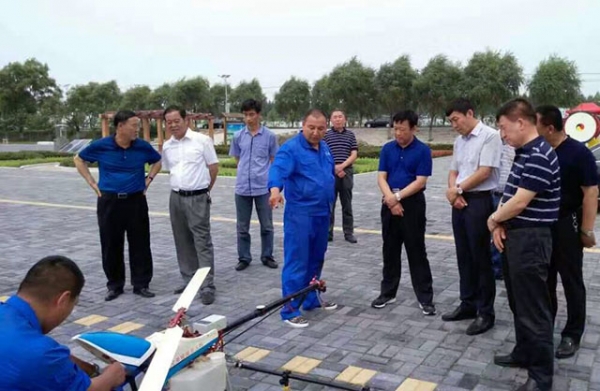 7月11日,黑龙江省农委主任王金会,桦川县县委书记郭广福一行亲临星火园区无人机测试现场,参观考察黑龙江天鹰兄弟植保无人机。