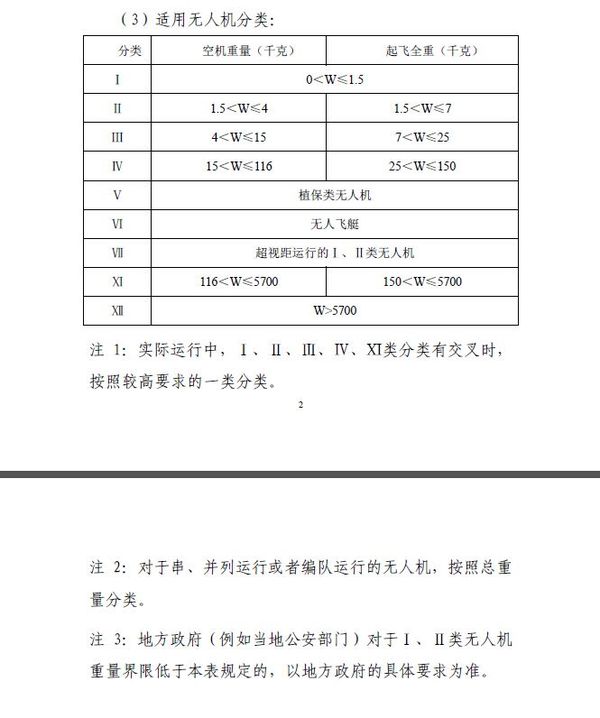 该通告对无人机(民用无人驾驶航空器)的分类作了调整。具体如下图: