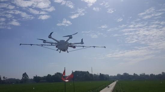 一天可喷洒近400亩水稻,顶40名人工,可实现自主飞行、GPS轨迹跟踪、断电记忆、报警等先进功能的植保无人机在崇州水稻基地上大显身手。15日,在崇州市隆兴镇,两架植保无人机小试牛刀,让人见识了科技支撑下的现代农业机械化。