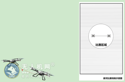 两位参赛者各驾驶一台无人机,在指定地点停放后,听从裁判指挥将无人机起飞到一定高度悬停后听到指令开始拔河,在两架无人机相互对抗的情况下,先飞出指定圈外的无人机获胜。