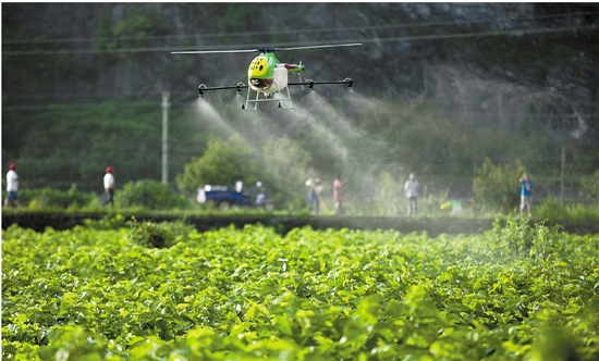 7月18日,淳安县威坪镇凤凰村千亩蚕桑示范园区内,灵巧的农用无人机正进行喷药作业。今年,淳安县在各蚕桑示范园区推广农用无人机实施病虫害统防统治工作,通过“机器换人”弥补人工不足,同时实现规范用药、减少农药面源污染。
