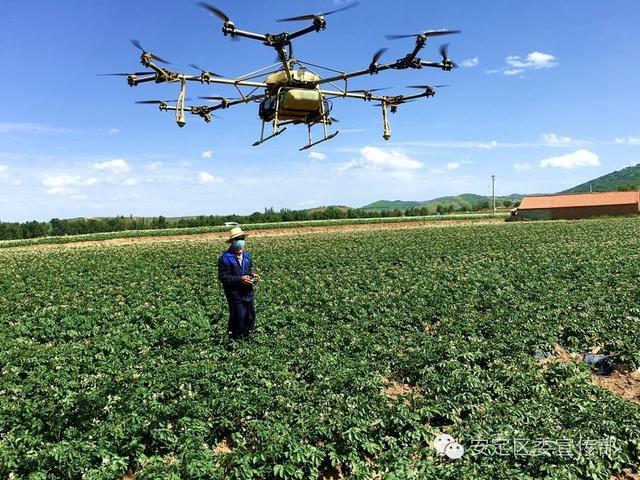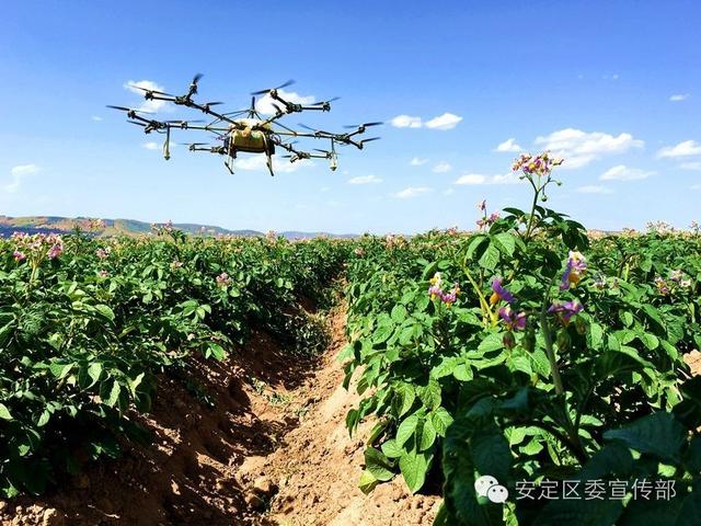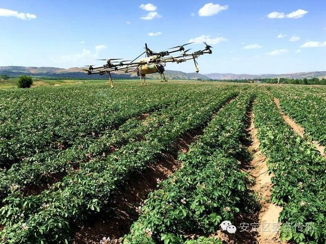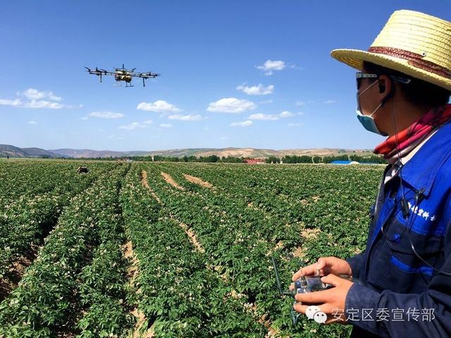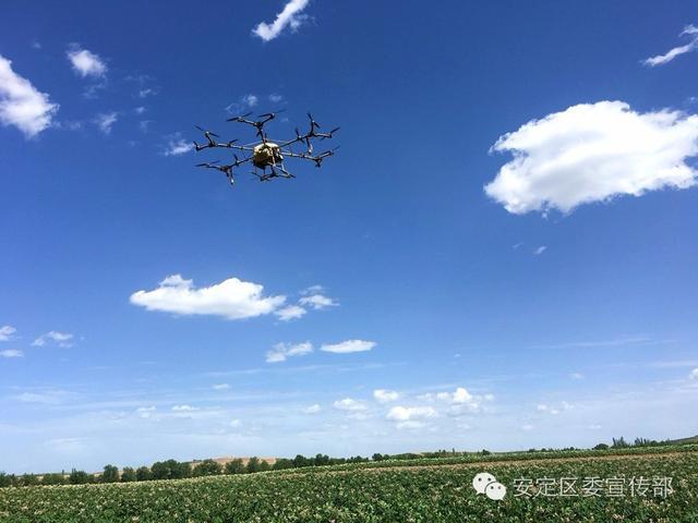 今年,安定区利用无人机助推农业生产,帮助农民轻松打药,采取促进作物植保与营养融合的方案,以药肥一体化的方式把农民从繁重的打药、施肥等劳作中“解放”出来。