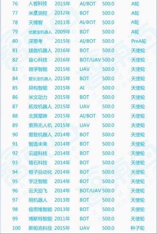 人工智能、机器人和无人机领域,这三个方向关联密切,创业公司数量庞大,本次调查就基于244家公司的数据,并按照融资总额排出了下面的100家公司。