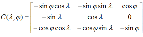 下面给出参考原点的坐标信息以及从 ECEF 到 NED 的转换计算: