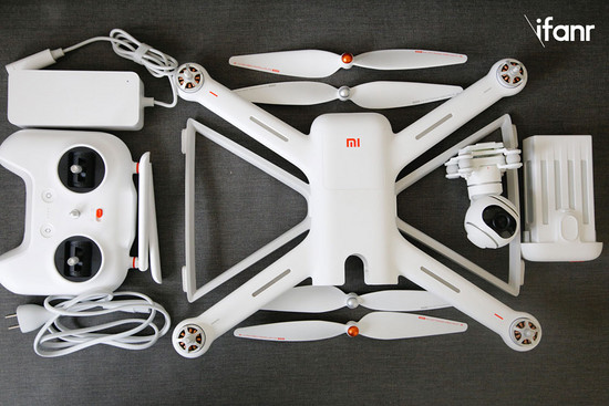 如果将图片放大,不难发现在机身左侧脚架与机身连接处有一个不太明显的圆点。由于另一侧脚架前方被 Hero 4 相机遮挡,不太可能是双目避障摄像头,所以爱范儿(微信号:ifanr)猜测这一圆点或许意味着这台无人机的脚架可以像小米无人机一样折叠,方便携带。
