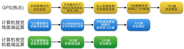目前,无人机实现追踪或跟随功能的主要有三种,基于GPS的热点追踪、基于计算机视觉地面端运算和基于计算机视觉的机载端运算,三种实现方式有所区别,其性能表现也有所差异。