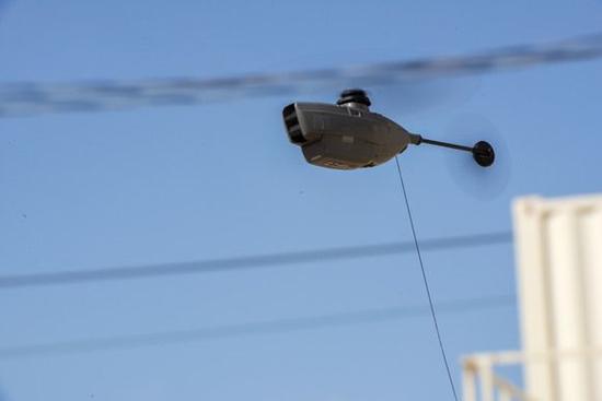 Black Hornet可不是玩具,它能在1.6 km范围内飞行25分钟,并实时回传视频信号。Black Hornet装备有GPS导航系统,图片中机尾的黑线不是能量或数据传输线,而是信号天线。这种小型无人机上有3个摄像头,一个对准机头正前方,一个与地面呈45°角,最后一个朝向地面。