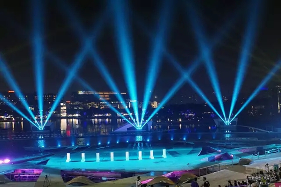 此次比赛首次采用水上无人机赛道,而现场更是使用水幕效果报幕,不仅大大增加了参赛选手的难度,同时也能够给观众带来更多视觉上的新体验。