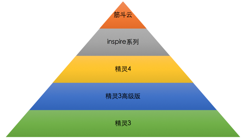 大疆已有超过十款在售无人机产品。王帆透露,从产品结构来看,大疆无人机产品是金字塔形:最基础款的是精灵3,即2999元的入门级,其上陆续是精灵3高级版、精灵4、inspire系列以及最高端无人机“筋斗云”。除了无人机产品,大疆还有云台相机灵眸系列、手持云台RONIN系列产品。