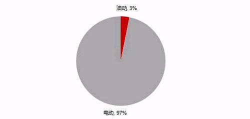 Ø按动力类型可以分为油动无人机和电动无人机。油动无人机机构占比约3%,主要是由于操作难度大,价格昂贵,研发难度大。