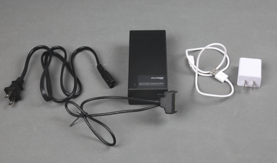 黑色充电器给无人机电池充电,白色充电器给XWatch充电。