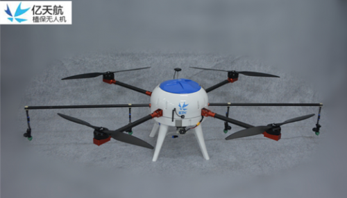 亿 天航农业植保无人机,是深圳亿天航公司自主研发的电池动力的农业植保无人机,纯碳纤维制作,电机运转寿命长达1000小时,标准载荷高达10公斤。日常维 护比较简单,容易掌握,对飞行员的操作水平要求不高;电池可重复使用,符合政府倡导的环保低碳要求;场地适应能力强,展开迅速,轻便灵活;工作状态一键起 飞降落,可轻松实现全自动无人驾驶;高原性能优越,电机输出功率不受含氧量影响,在高海拔地区也可正常工作。