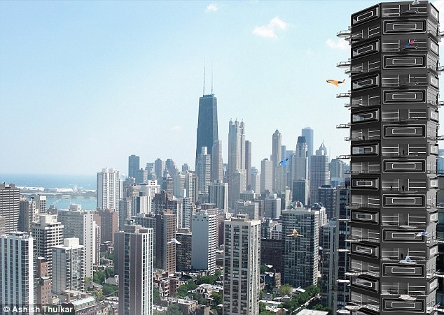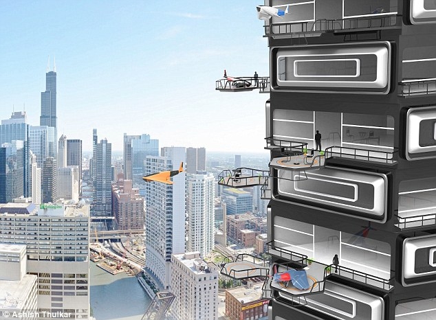 偌大的阳台可以作为无人机和小型电动飞行器卸货以及接送乘客的着陆点。庞巴迪先生说,人们不必自己购买一架无人机,只需要通过使用一个类似出租车叫车软件的移动应用软件,无人机就会停靠在你家的阳台上。