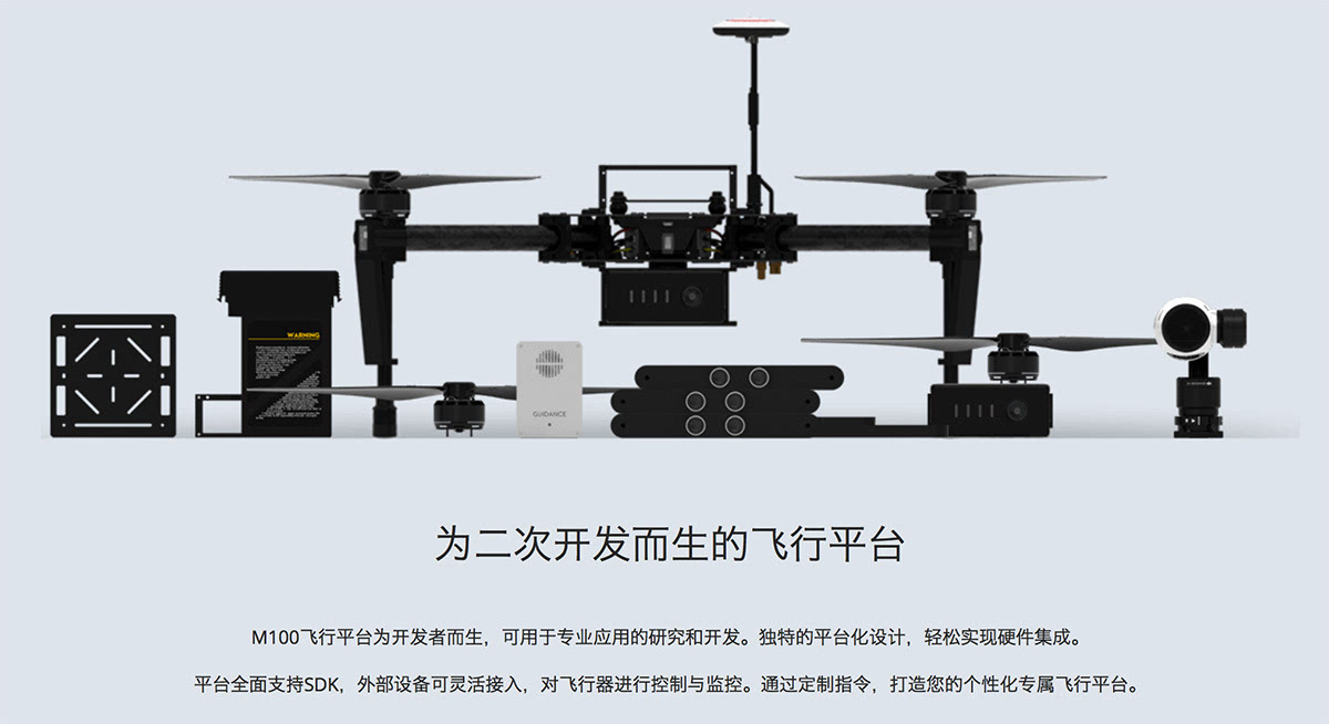 换言之, 大疆并不在意你用怎样的计算平台,只希望开发者能透过 M100 开发平台(下图),为大疆无人机开发各种新的硬件配套、或是各种功能的新应用。