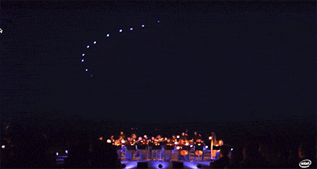 问题是 大疆的 M100 开发平台、及 Guidance 计算机视觉套件,已被证实是个很成熟的平台,爱范儿主笔 Odin 也亲身见识过 M100 那种一体化的稳定性。但英特尔的 Aero 平台虽然在先前的“百台无人机之舞”表演里大出风头(上图),但在仍然未有实际产品现身。
