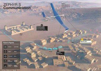 此外,Zephyr还能够在世界上任何地方操作,通过通信卫星向其传送指令。如果没有可用卫星,SAS的人员可以通过一个控制站使其航行400千米以上。SAS将使用无人机上的摄像头监控地面活动。Zephyr的天线能为搜寻地球更广阔区域提供一个通讯平台。