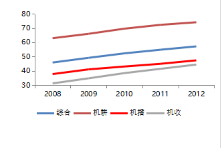 农村人口大量流出。随着城镇化的推进,农村人口通过升学、经商、务工等各种形式,进入城市,农村人口大量流出,乡村总人口已经从2000的8亿快速下降到2015年的6亿人,农民工人数也由2008年的2.25亿上升到2015年的2.77亿。
