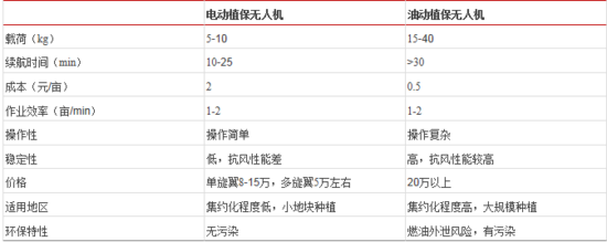 目前电动无人机成为很多小企业切入植保无人机领域必然选择。电机飞行80%靠飞控,20%靠飞手经验,轻巧,灵活,操作简单,故障率低,对飞手的技能要求较低;油机对操控手的技能要求比较高,目前国内操作娴熟的无人机飞手短缺。况且电机比较容易维修和维护,而油机相对复杂,维修和保养要求都相对较高。国内的土地单户的种植面积较小,土地分散且大都不平整,使得油动植保无人机续航时间长载荷量大的优点发挥不出来。再加上油动植保无人机价格昂贵,导致目前国内的植保无人机只有3%是油动的。对于企业而言,用于航模航拍的电动无人机在中国是一个完整且竞争充分的行业,而油动植保工程型无人机载荷在10-45公斤之间,是处在航模与载人飞机之间的一个断层,研发没有现成教材,都是在尝试和摸索,相对困难。