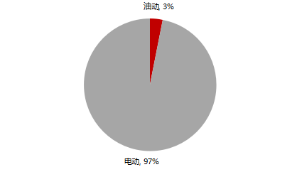 按动力类型可以分为油动无人机和电动无人机。油动无人机机构占比约3%,主要是由于操作难度大,价格昂贵,研发难度大。