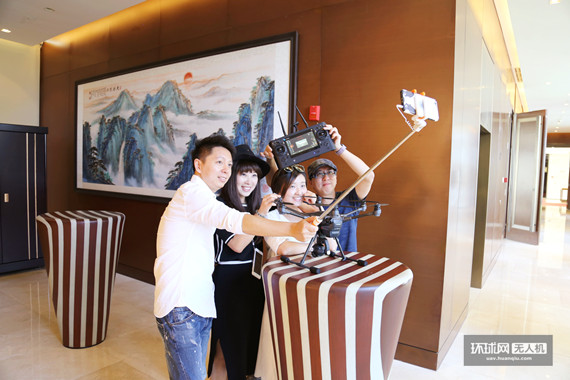 上图为我网A姐与5iMX高“小”鲜肉、网红姐姐Maggie、爱范儿Odin大叔以及主角台风H与ST16地面站合影的场景。