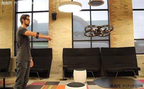 手势交互是一种未来人机交互的趋势,目前在精确度上存在挑战。在CES2014的展场上,有利用MYO手势控制臂带来控制AR.Drone2.0四旋翼的演示。