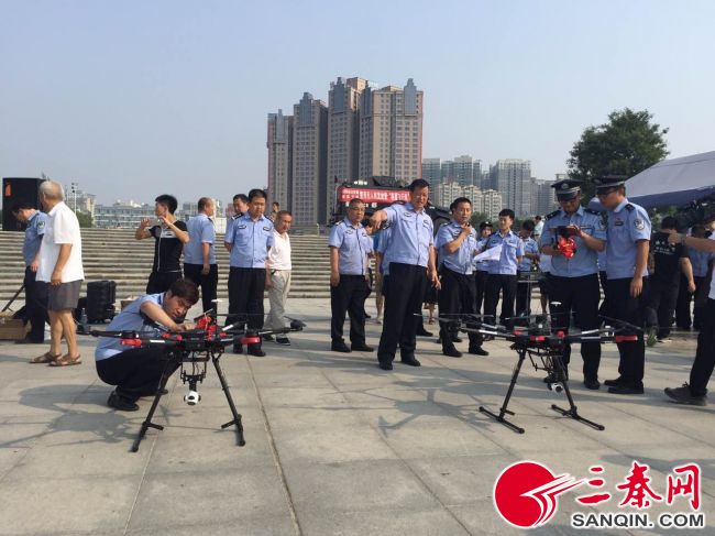 有人飞车抢夺,无人机迅速实施空中跟踪取证;河道中有人被困,无人机快速向被困人员投送救生圈及绳索……这是8月23日上午咸阳市公安局秦都分局在统一广场举行的警用无人机发放暨“秦鹰飞行队”授旗仪式后现场演练时的一幕。