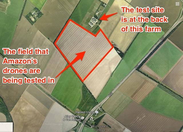 有些媒体的报道认为,这个秘密测试基地位于剑桥郡的亚马逊研发中心附近;BBC报道称,亚马逊在大学城东南方的一处名为Fleam Dyke and The Roman Road的历史遗迹测试无人机,但是在此之前,该秘密测试基地的照片却几乎从未见诸报端。