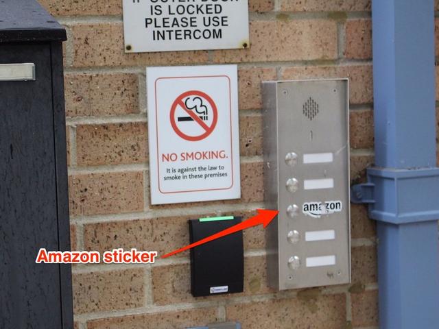 这幢大楼上并没有亚马逊的LOGO。这个超小的帖子是唯一一个指出无人机测试地点的路牌。