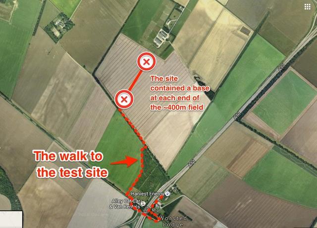 据两名不愿意透露姓名的本地人称,无人机的测试地点在一个名为Worsted Lodge的地方附近,大概在剑桥东南方8英里的位置。其中一名本地人还特意在地图上指给我看,并且告诉我如何去那里。