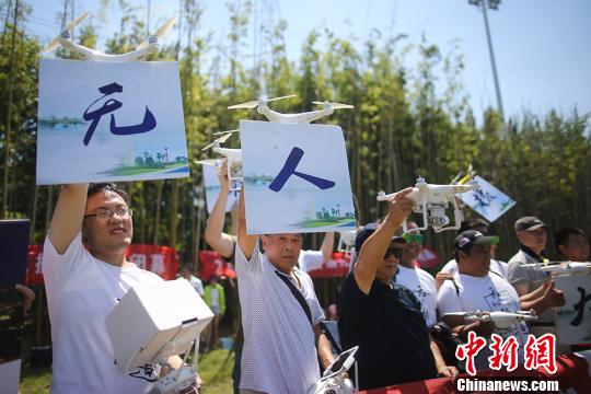 参加无人机摄影大赛飞行表演的“飞手”们合影留念