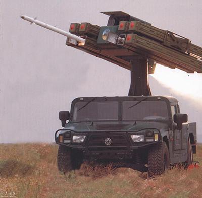 使用东风猛士底盘,搭载8枚天燕-90导弹的神弓-2型地空导弹系统,可对6000米以内低空飞行的武装直升机形成强大威慑,这个距离刚好覆盖美军目前使用的阿帕奇武装直升机和MQ-1“捕食者”无人机的作战范围。