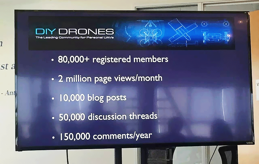 虽然已经拼了老命,孩子们依然提不起兴趣,可他却玩得越来越尽兴,于是做了个无人机论坛网络社区 —— DIY Drones,开始分享自己的经验,教大家自己做无人机。