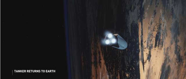 当推进器将回到发射台上后,将再次装载燃料添加船,并将其送入地球轨道。