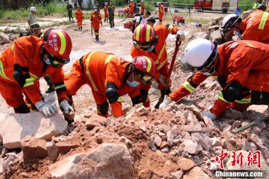 演练假设某地发生地震,灾情发生后当地先后调集青川、利州、经开、昭化、朝天、苍溪、剑阁等9个搜救队,共100余名官兵、25台车、13艘船奔赴现场展开救援。因道路损毁车辆无法到达震中的灾情,支队指挥部下达命令,全体参训官兵身着全套抢险救援服,背负个人保障物资背包,携带重型搜救器材,负重向事故地点徒步开进。图为水域救援现场消防官兵使用抛投器营救落水者。