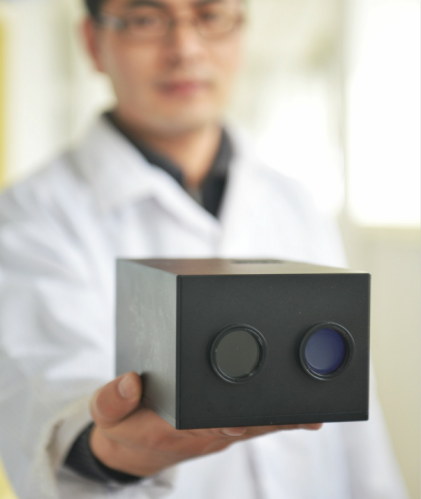 在中国航天科工二院207所,记者看到,该设备是一台通体黑色的盒状机器,大小与一本牛津英语词典相仿,重约3斤,成年人一只手就可以轻松托起。最引人注目的是机身正前方的两个直径5厘米左右的镜头,一紫一黑,一个负责感应紫外线,一个则负责观测可见光。紫外图像可以精确显示目标产生电晕和放电情况,可见光图像可以还原被测目标周围的背景信息,二者结合生成的双光谱融合图像,相当于在一幅图像上明确指出了目标漏电位置情况。