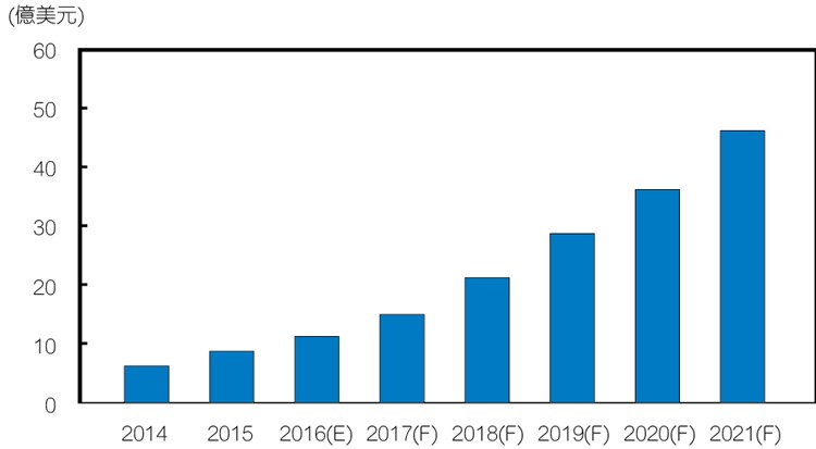 2014~2021年商用无人机市场规模(来源:拓墣产业研究所)