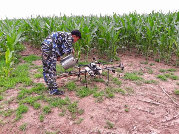 近日,吉林省龙井市首次在老头沟镇大马村进行植保无人机示范。无人机植保在农业生产中具有明显的优势,作业效率高,施药效果好,雾滴小,喷布均匀,有利于农药雾滴均匀散落于植株各个部位,并且不受地形环境、作物高度影响,作业自动化程度高,劳动强度低等诸多优点。本次示范为8旋翼电力植保无人机,电池需要10分钟更换,每次加药水6升左右,每小时可作业40亩,本次作业面积40公顷。
