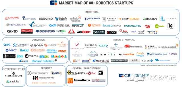 近日,CB Insights发布了一份全球机器人创业公司商业版图,在工业级机器人、消费级机器人、医疗服务机器人、安全机器人、通用机器人等领域,精明的VC们十分积极地在攻城略地。这篇文章梳理了这一领域80家公司,我们认为这对于关注机器人创投圈的读者具有较高的价值,就做了简要编译。