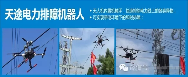 天途电力排障机器人已经申请国家专利,天途电力排障机器人,内置机械手,快速排除电线上的各类异物,并可实现带电环境下的即时排障。利用无人机在电力系统中排障巡检线路,也有效的降低了电力企业的成本预算,还提高了电力巡检工作的效率,是人工排障效率的几十倍。