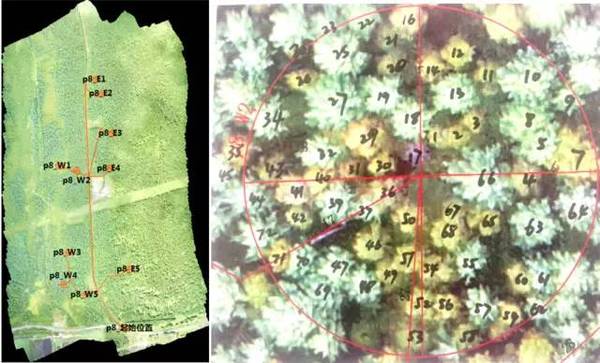 为有效解决这一瓶颈问题,森林遥感课题组历时两年完成了“无人机森林调查系统”的硬件构建和测试飞行工作。此次实验主要利用无人机航拍得到的正射影像进行野外调查点的选择,并以正射影像为底图,以卫星定位系统作为辅助,通过对无人机正射影像的现场快速解译(如枯立木、倒木、树种和单木相对大小等),使得地面单木测量直接与无人机影像上的单木对应。